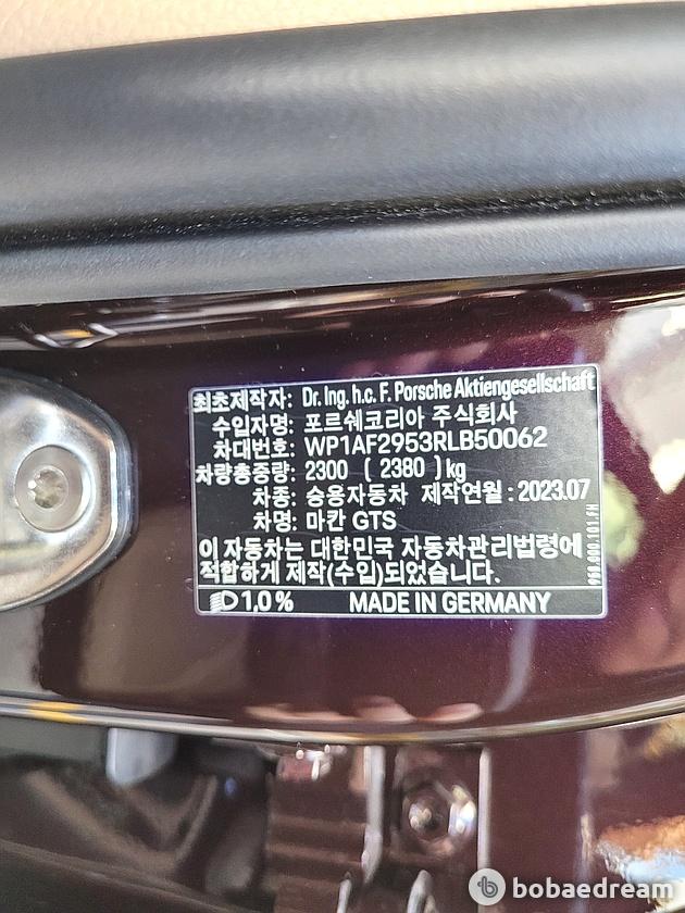 2024년형 (2023년 10월 등록) 포르쉐 마칸 3.0 GTS 모델을 판매합니다.》정식출고》신차가 1억 3,790만원》월 218만원 x 35개월 (총 60개월)》무사고 (조수석뒤도어 단순교환)》오릭스캐피탈 운용리스 승계 6,339만원》449마력 V6 바이터보, 고성능 GTS 버전 컴팩트 SUV